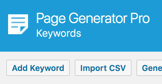 Click the Add Keyword button below the Page Generator Pro title, which can be found towards the top of the screen: