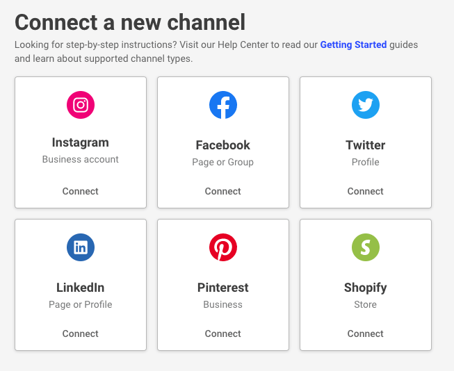 If your account does not have any of your social media profiles connected to it (for example, you’ve just registered an account with the social media scheduling service), you might be prompted to connect your social media accounts: